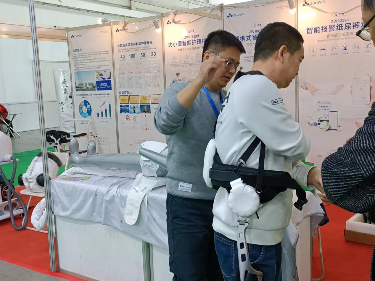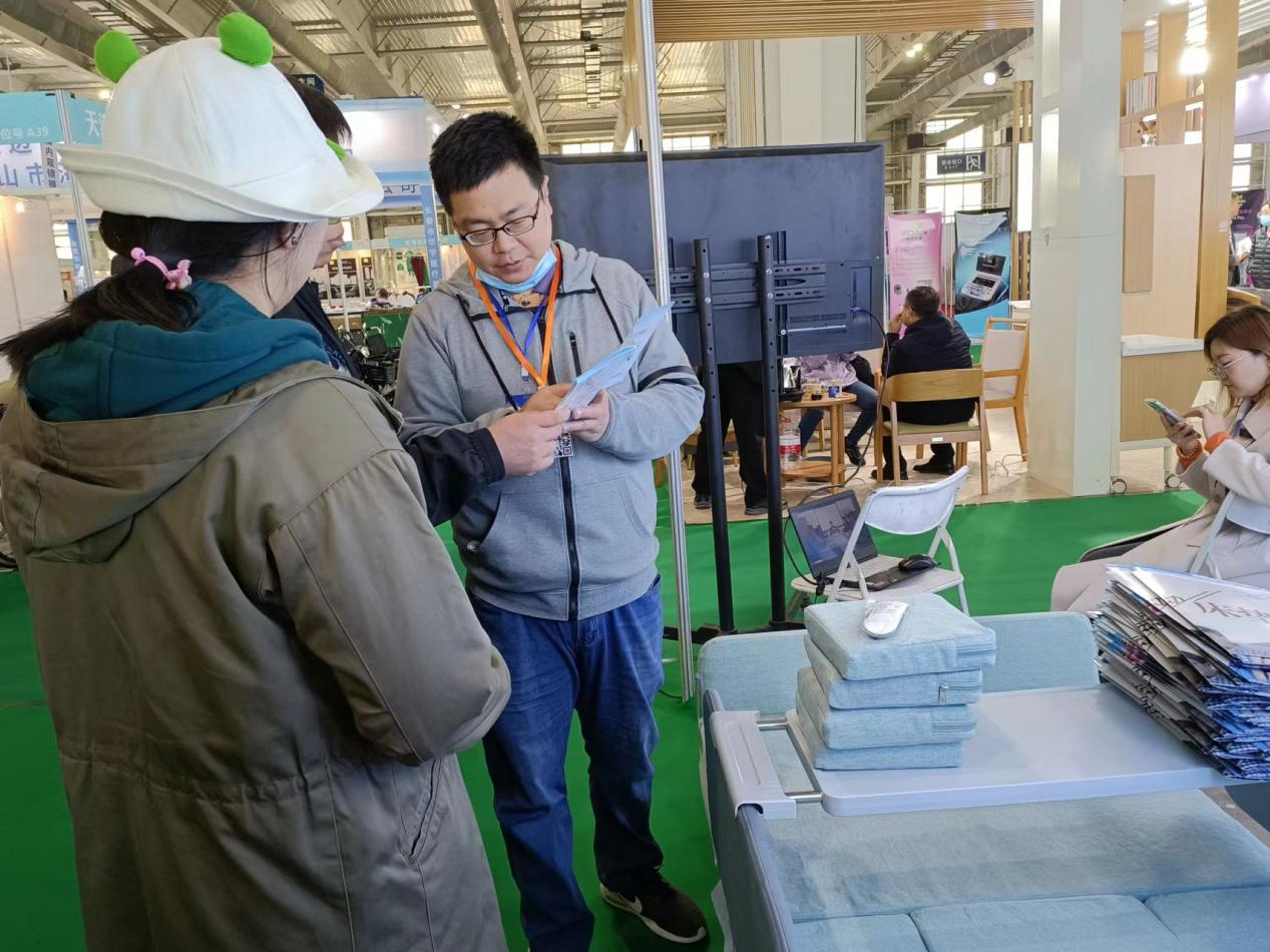 展会现场还设置了智慧养老产品免费体验区,各种智慧养老产品应有尽有,智能防摔服、智能助行机器人、明火无烟艾灸机器人、电动多功能护理床、适老化家具等让参观者大饱眼福的同时,也激起了他们的消费热情。