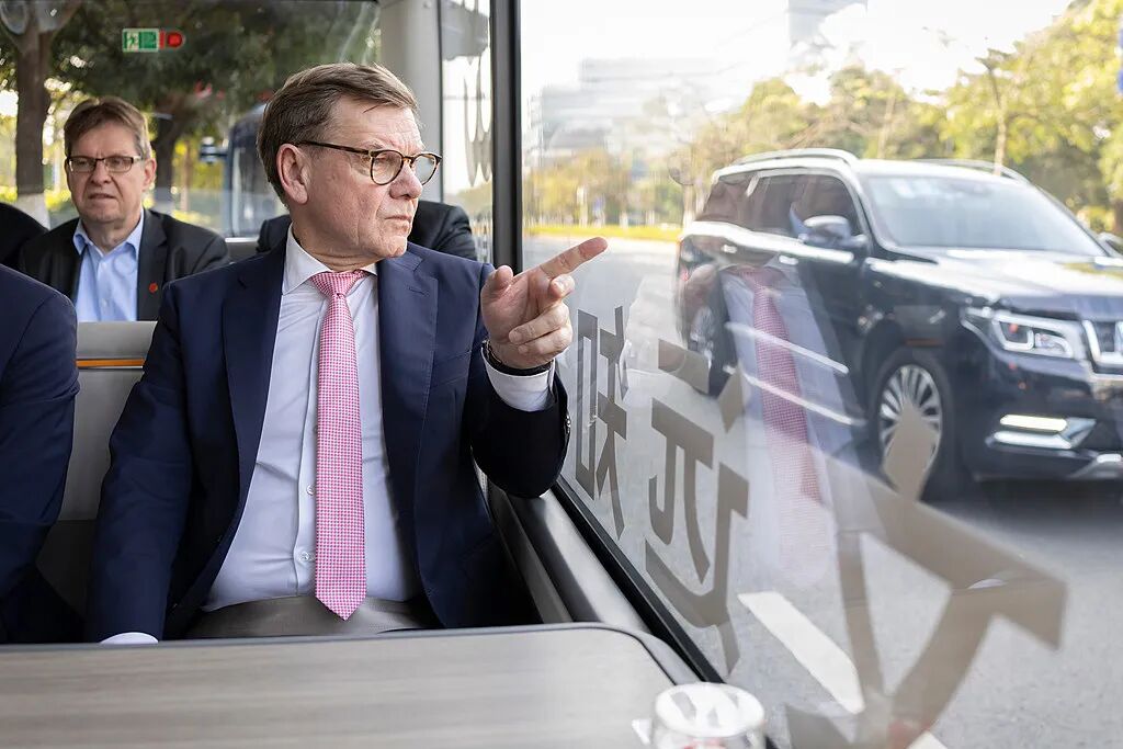 在广州,瓦德富尔参观了德国隧道掘进机企业海瑞克的重要生产基地。公司创始人马丁·海瑞克带他参观厂区。早在2012年,时任总理的默克尔也曾由这位如今83岁的企业家陪同参观其广州厂区。在广州,该公司负责组装和翻新其机械,并参与了广州地铁建设。