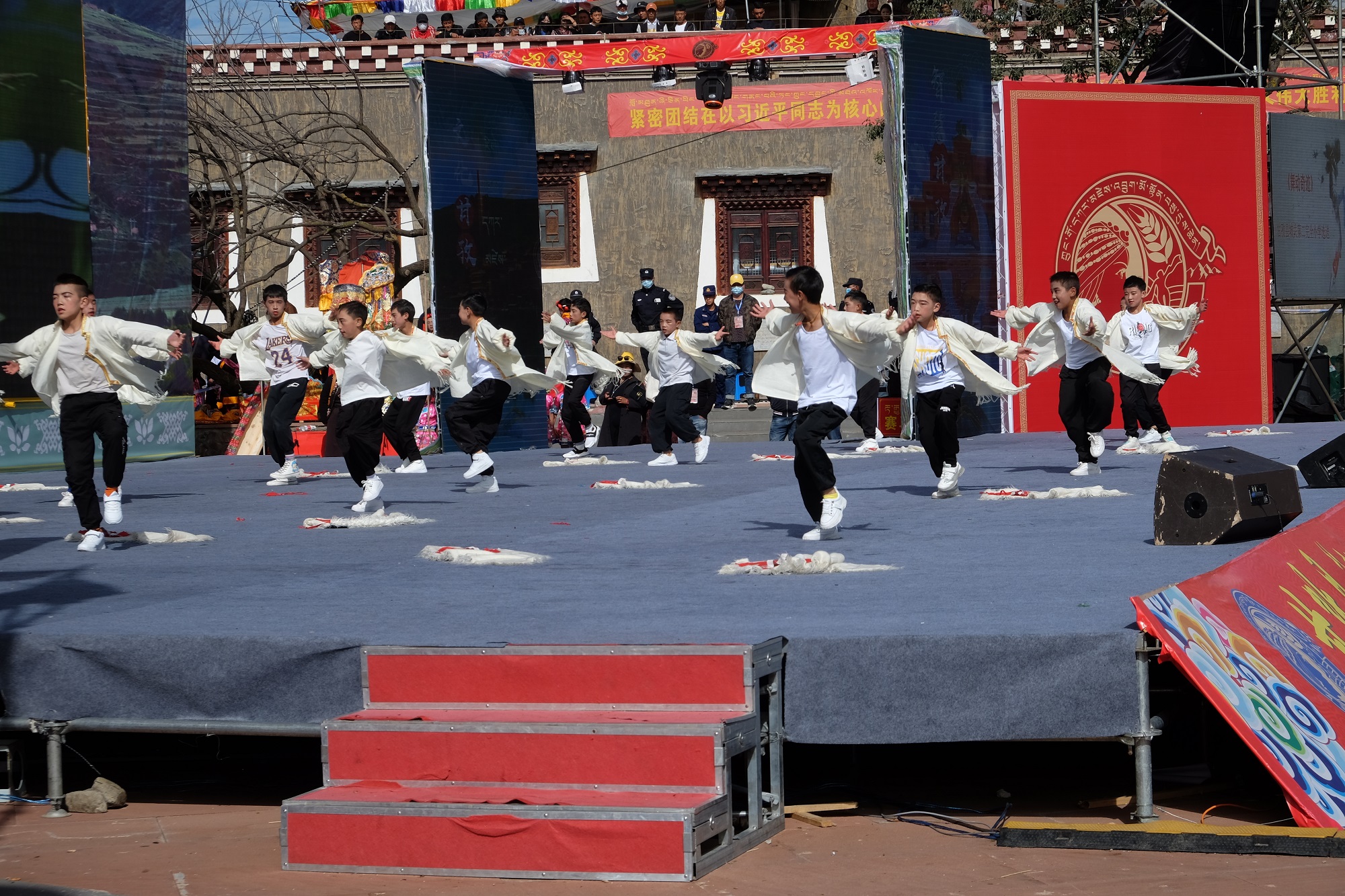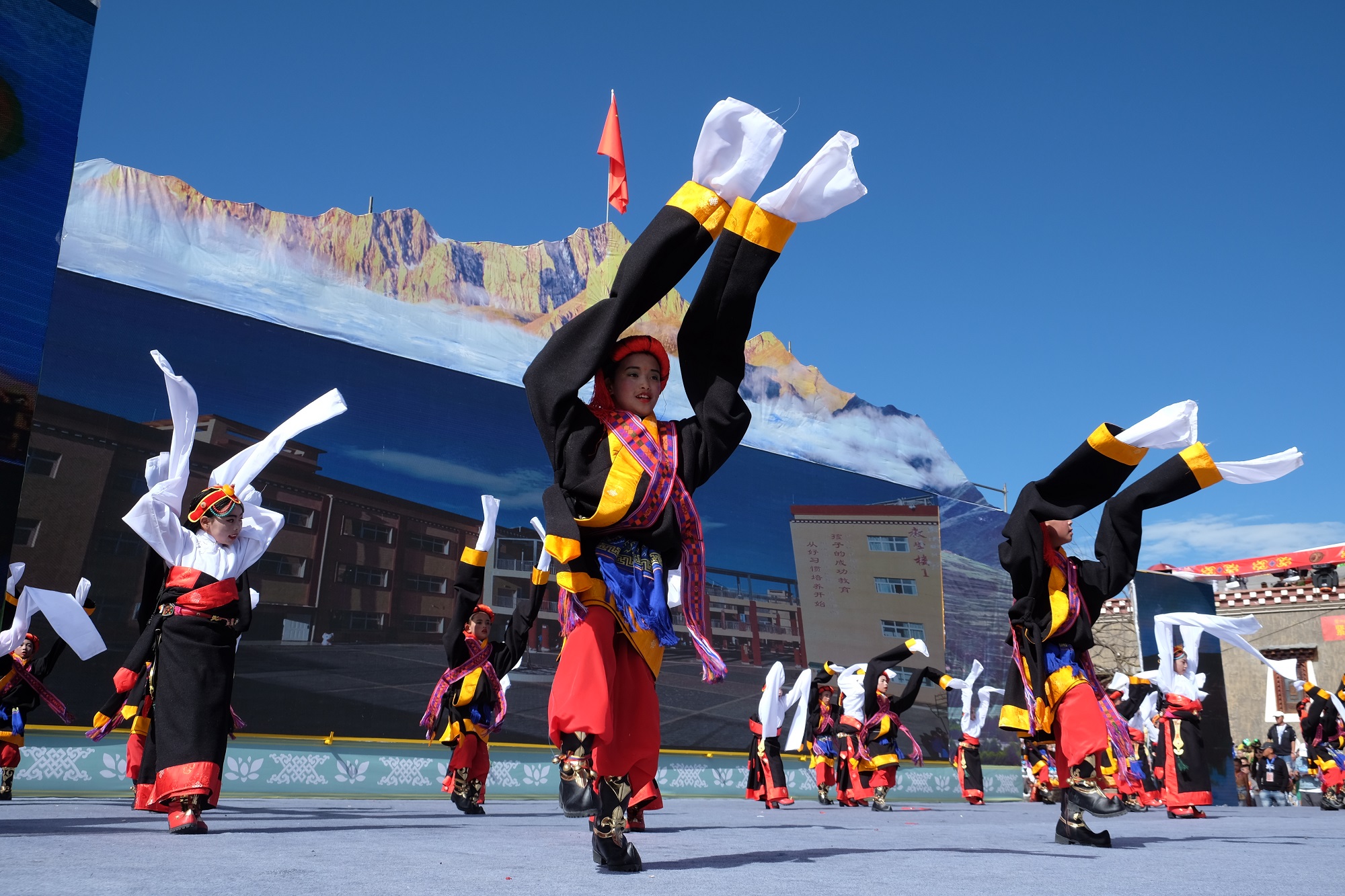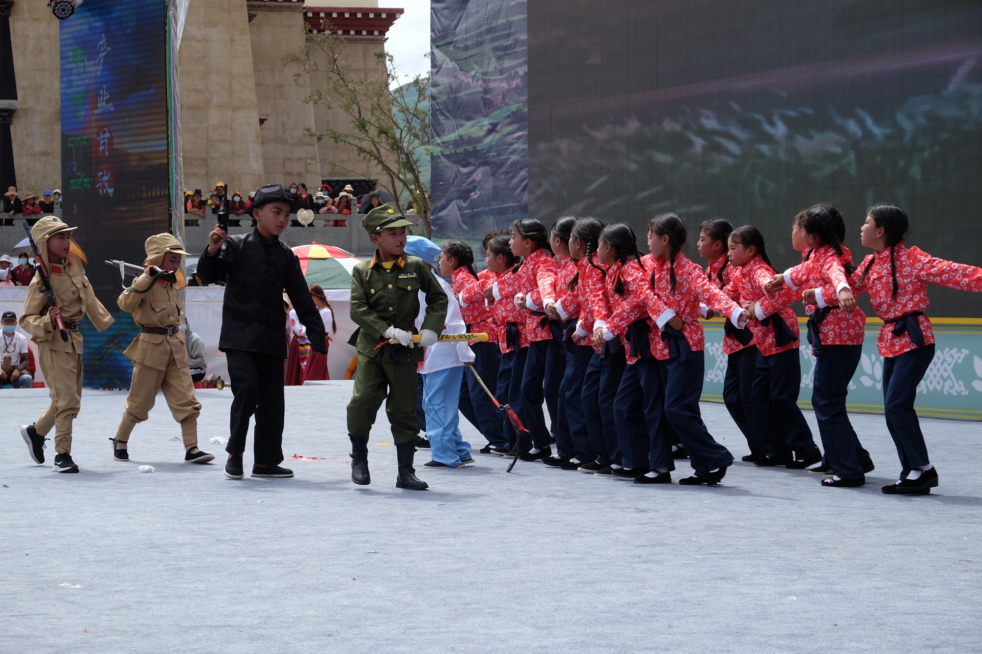 8月18日,“征程70年•壮丽甘孜梦”中国甘孜第三届珠牡迎秋节活动的第四天,格萨尔王城文化广场歌舞飞扬,乐声阵阵。“感恩奋进新甘孜•同心共筑中国梦”主题中小学生精品文艺演出在这里隆重举行,来自该县22所中小学校及幼儿园的师生们用歌声传唱快乐与感动,用舞姿表达幸福与欢喜,为甘孜藏族自治州成立 70 周年献礼。