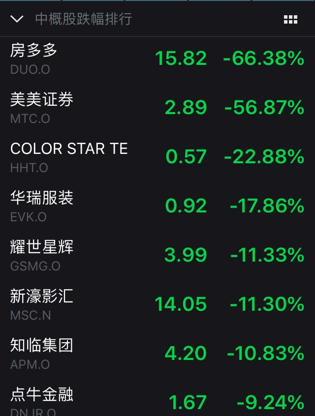 截至收盘,稳盛金融仍涨169%,嘉银金科涨96.6%,金融界涨51.5%,而房多多跌逾66%。据腾讯财经统计,稳胜金融54次触发熔断,房多多23次触发熔断,嘉银金科8次触发熔断,金融界10次触发熔断,普益财富6次触发熔断,多只中概股盘中共触发了101次熔断。