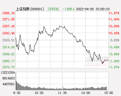 金融界4月26日消息 周二早盘A股三大指数小幅高开后于盘初震荡下探,沪指一度跌破2900点,随后市场出现一波反弹,深成指涨超1%,创业板指收复2200点并涨超2%,午前各大指数横盘整理;午后A股再度下行走弱,沪指收于2900点下方,深成指跌近2%。