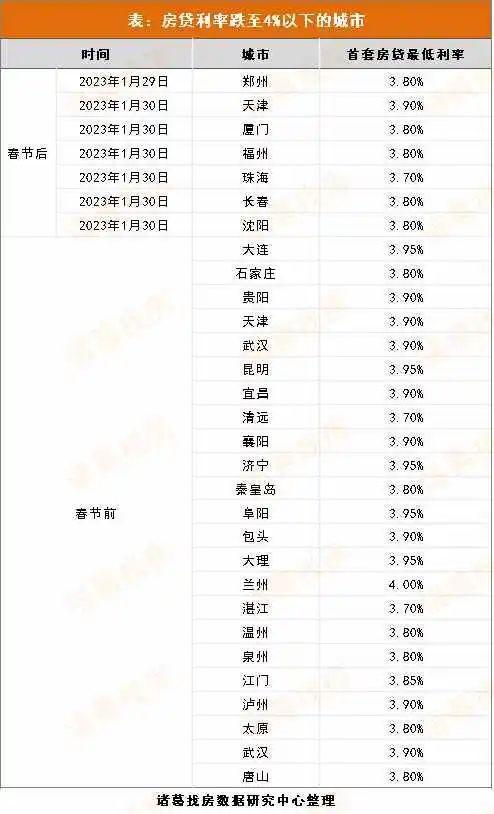 春节假期后,郑州、天津、厦门、福州、珠海、长春、沈阳等城市相继下调了首套房贷款利率下限。