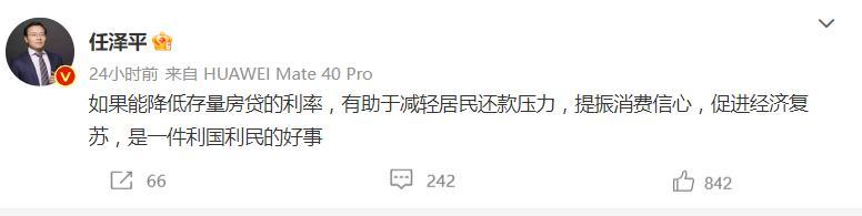 因此,著名经济学家任泽平在社交媒体感慨,如果能降低存量房贷的利率,有助于减轻居民还款压力,提振消费信心。