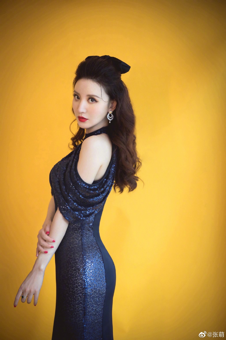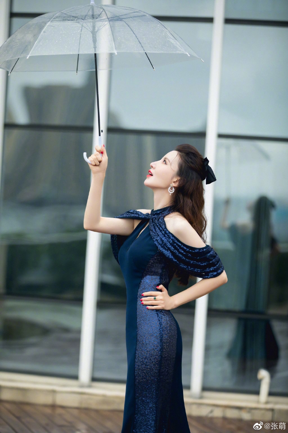张萌穿深蓝星河鱼尾裙身段妖娆 妆容精致女人味十足