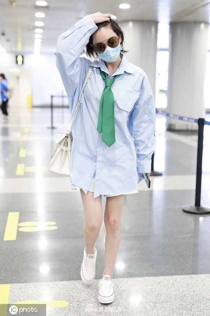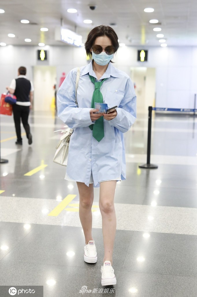5月26日,张馨予现身机场,从北京飞往上海。她墨镜遮面霸气撩发气场足,穿宽松衬衫搭配领带似清新学姐,玩下衣失踪秀纤细美腿。