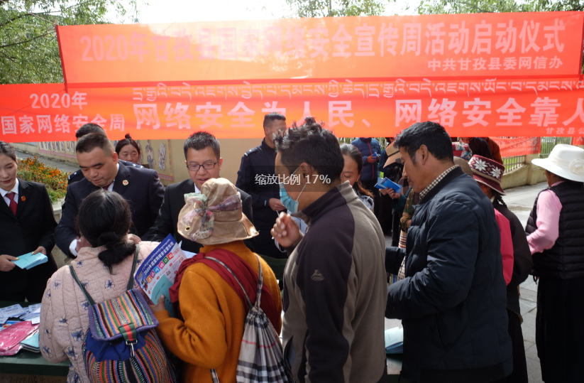 9月14日上午,为期一周的2020年国家网络安全宣传周活动在甘孜县全面启动,这标志着一系列相关活动拉开了序幕。本次网络安全周活动主题为“网络安全为人民,网络安全靠人民”。为将本次宣传周活动深入开展到全县各个层面,中共甘孜县委网信办联合县人民检察院、县人民法院、司县法局、县公安局共同开展了宣传周启动仪式,并在县城人流量较大的路口开展了宣传活动。