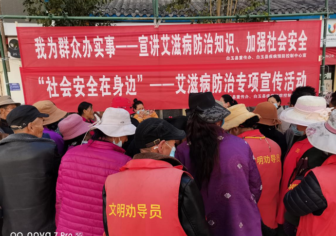 提高广大干部群众对艾滋病防治知晓率,动员全社会参与和关注艾滋病防治工作,4月15日,白玉县以“国家安全宣传教育月”为契机,以“社会安全在身边”为主题,开展了艾滋病专项宣传活动