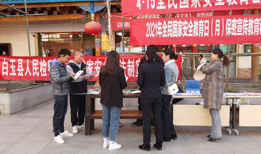 当天上午,中共白玉县委保密机要局、白玉县公安局、白玉县人民检察院等单位纷纷以“国家安全宣传教育月”主题开展了“2021年全民国家安全教育日(月)保密宣传教育密码安全教育”“国家安全重如山,保持警觉全体动员”“关注核安全”等系列宣传活动。
