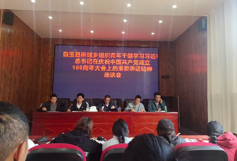 在精心组织收听收看庆祝中国共产党成立100周年大会盛况基础上,白玉县麻绒乡党委结合常态化开展党史学习教育,组织该乡青年干部职工集中学习了“习近平总书记七一建党百年庆祝大会上的重要讲话”。会议以座谈会的形式召开,大家纷纷表示:习近平总书记的重要讲话鼓舞人心,催人奋进。作为基层一线的党员,要继续弘扬光荣传统、赓续红色血脉,努力践行以人民为中心的发展思想,以实干担当的行动彰显初心,以积极进取的姿态践行使命,为推进乡村振兴高质量创新发展贡献自己的全部力量。