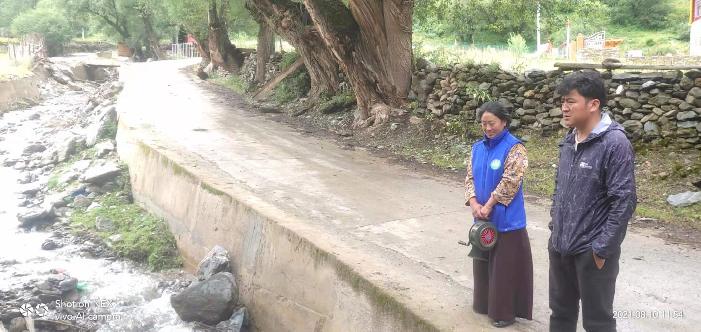 泽翁郎加告诉我们,今年麦学村发生过一次泥石流,在县委县政府大力的帮助下,妥善安置了安全受威胁的农户,在避险点安排他们暂时住进了帐篷,并对泥石进行了清理。看到泥石流的破坏性,他觉得自己肩上的责任更大了,所以每次巡逻都不敢大意,每次巡逻完后都会积极与上级部门打电话,有事报事,无事报平安。
