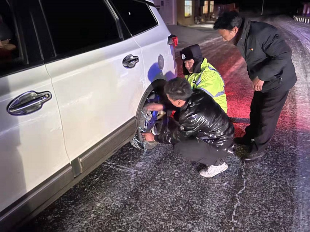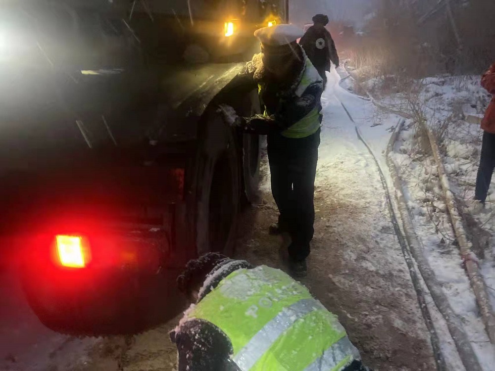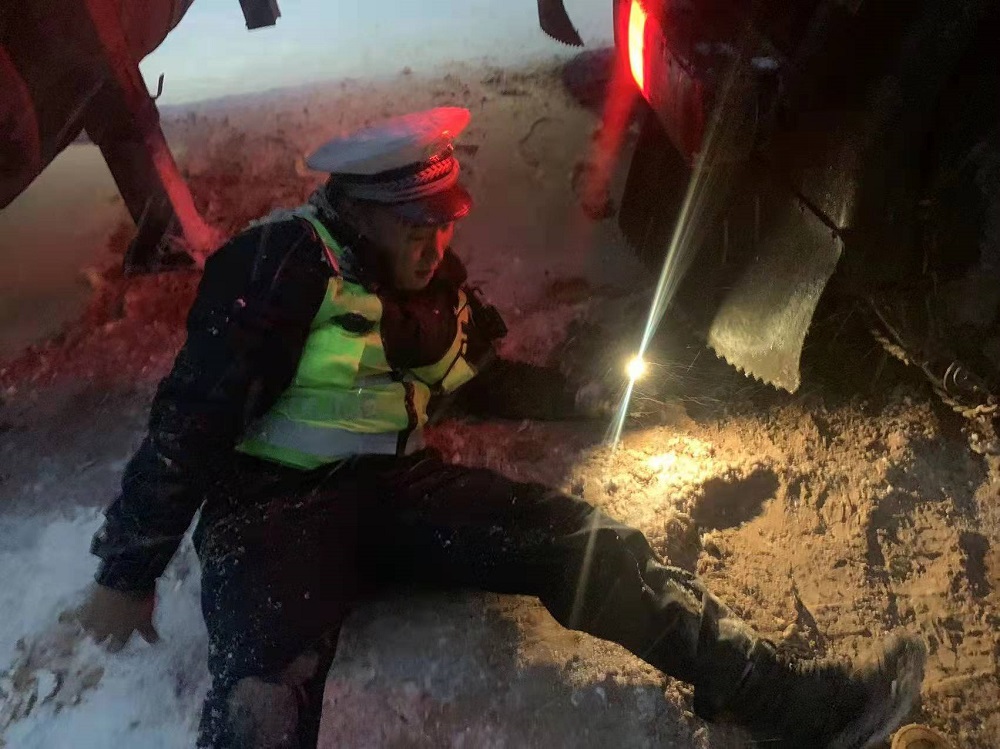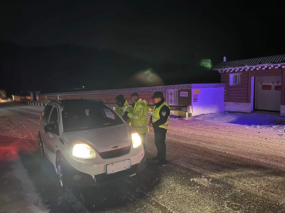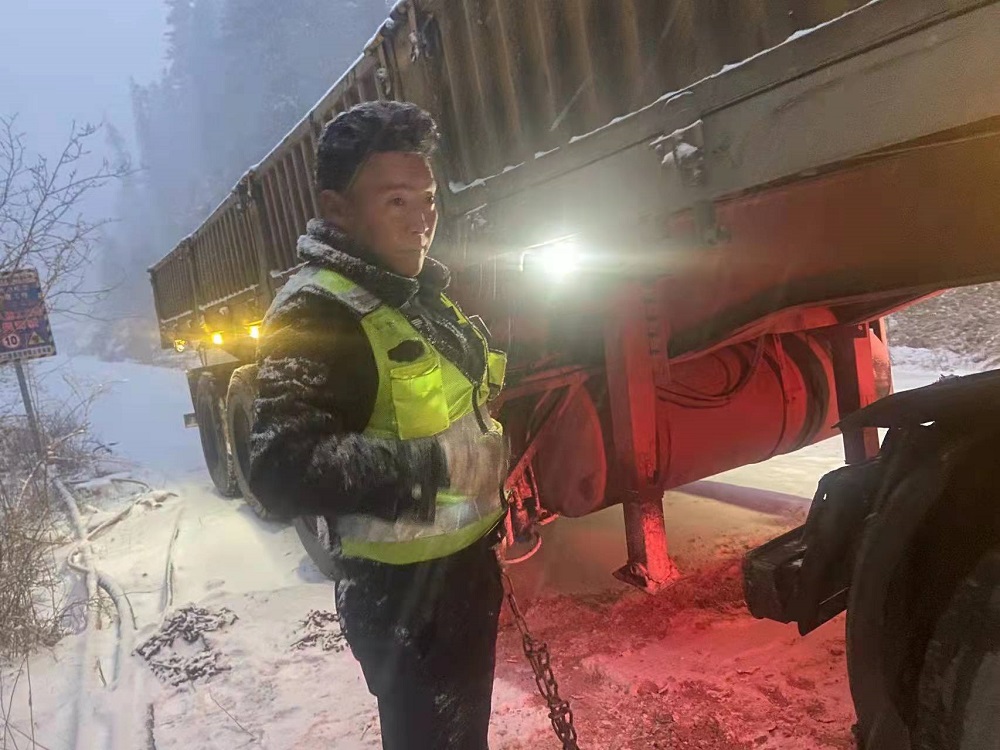 白玉突降大雪 交警坚守路上 雪中温暖护航