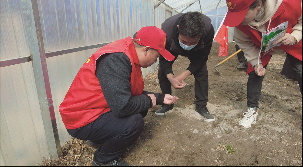 在一旁认真学习着如何挖坑、撒种、培土、浇水等技术的扎西尼玛是绒盖乡的基层农技员,在科技特派员服务团的指导下,一步步进行着实践操作。“我们农机站平常在开展农耕种植技术服务工作的时候,可能是因为我们的经验还不太丰富,导致每次我们在耕种服务工程中出现很多的困难,县里的科技小分队到我们乡上对我们进行培训跟指导。在经过这些专业的指导以后,我们农机站地技术人员也了解了这些事情该怎么解决,对未来开展科技服务的工作也有了更好的认识。”艳阳下的温室大棚内温度逐渐升高,每个人额间都开始冒汗。一排排大白菜种子下地,圆满完成了今天学习任务的他不断向科技特派员服务团表达感谢。
