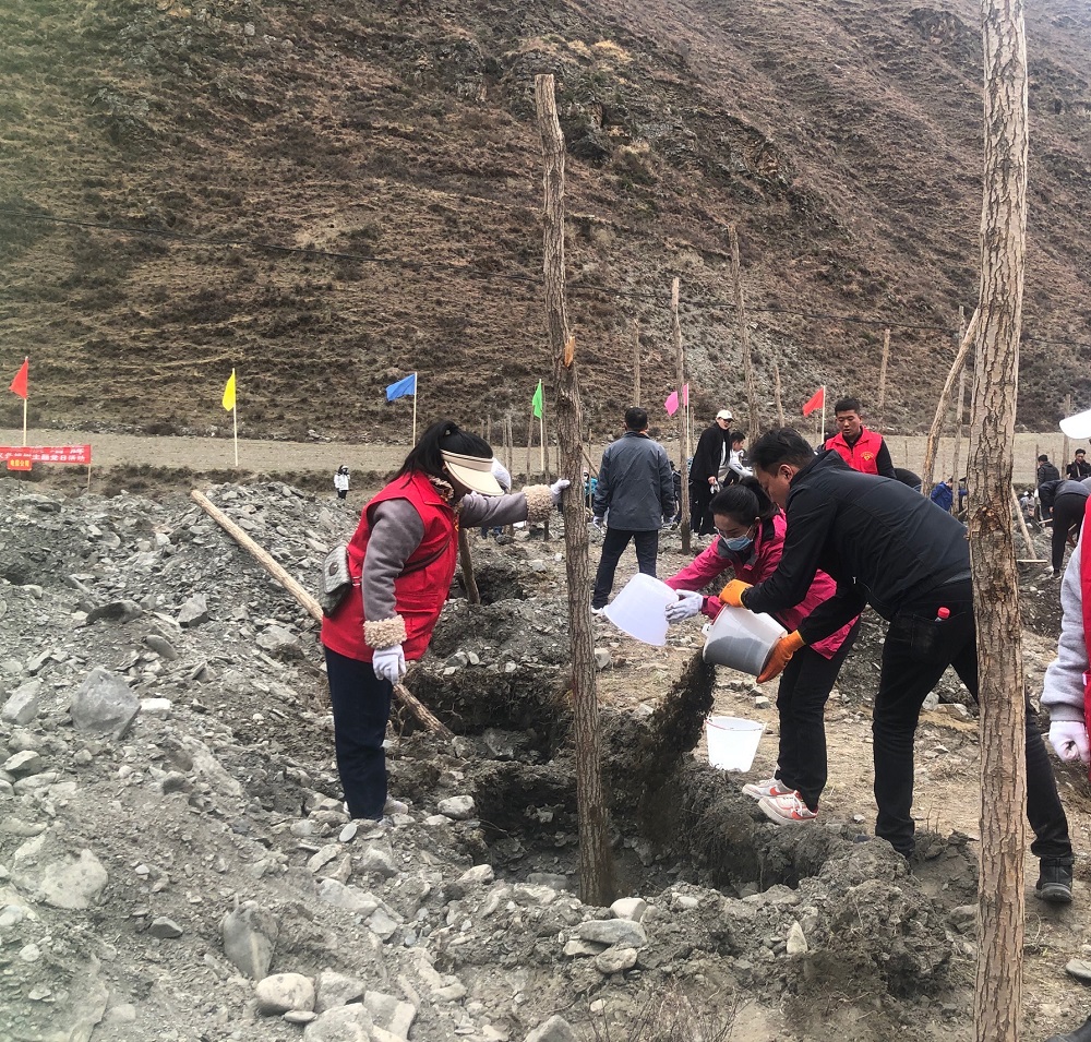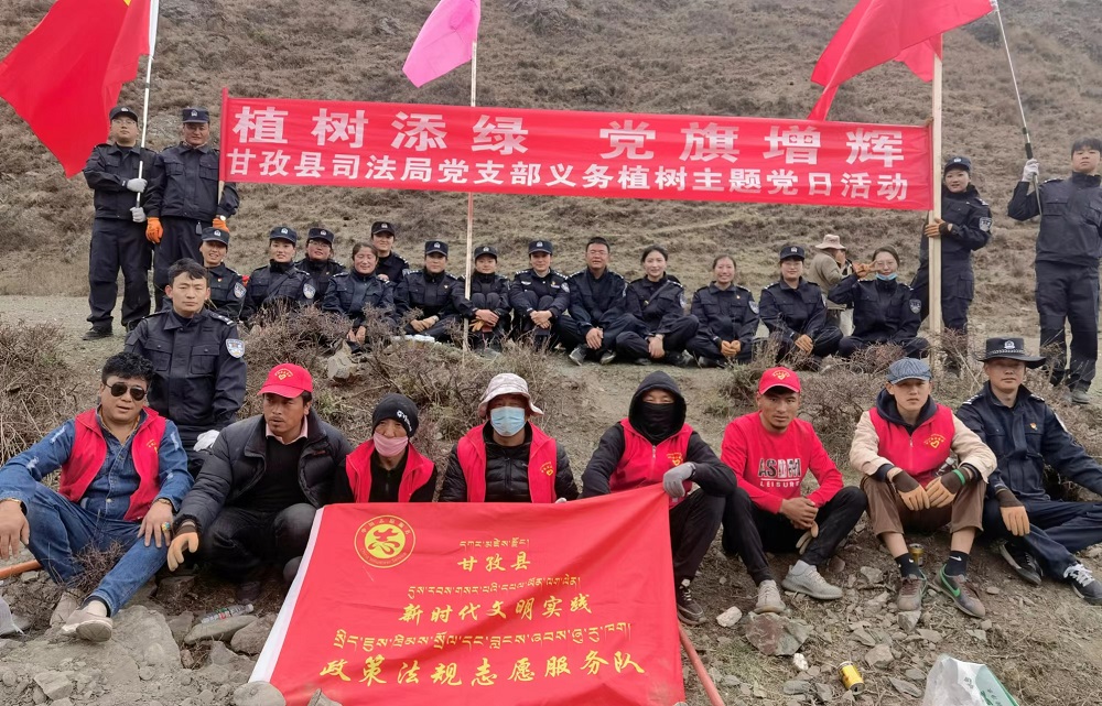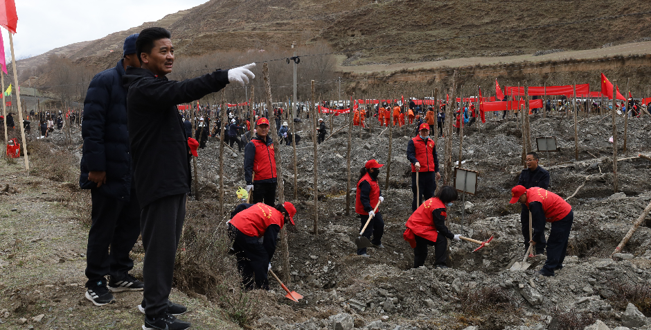 在甘孜县甘孜镇绒岔六村,甘孜县主要领导带队,组织党员干部群众、新时代文明实践志愿者等1500余人开展义务植树活动,坚持以实际行动迅速掀起全民义务植树添绿高潮,加快推进甘孜县生态文明建设。
