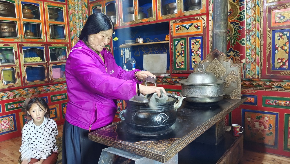 走进所珍家,漂亮的藏房、整洁的庭院、明净的窗户处处彰显着村民所珍一家的勤劳。