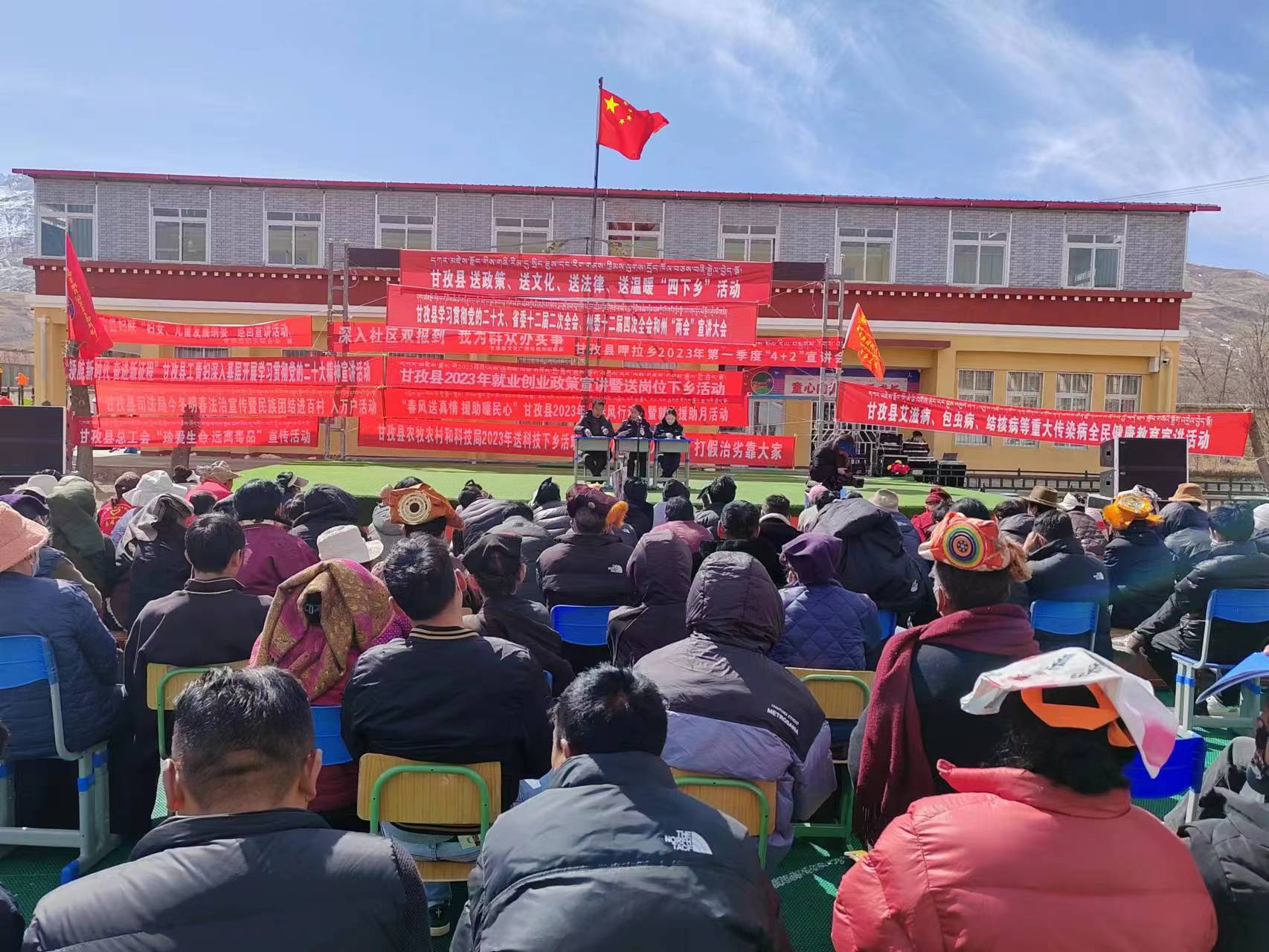 据悉,此次开展“四下乡”活动是为深入学习宣传党的二十大及省州系列精神,认真落实省委关于“巩固实现稳藏安康的战略要地”系列决策部署为宗旨在“两节”期间,结合文化科技卫生“三下乡”活动开展的以“送政策、送文化、送法律、送温暖”为主的走基层活动。