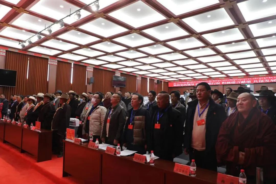 大会执行主席朱小林、刘伟、降措、阿勇在主席台前排就坐,会议由阿勇主持。索朗群佩、洪伟、充翁旦珠、周建萍出席大会并在主席台前排就坐。