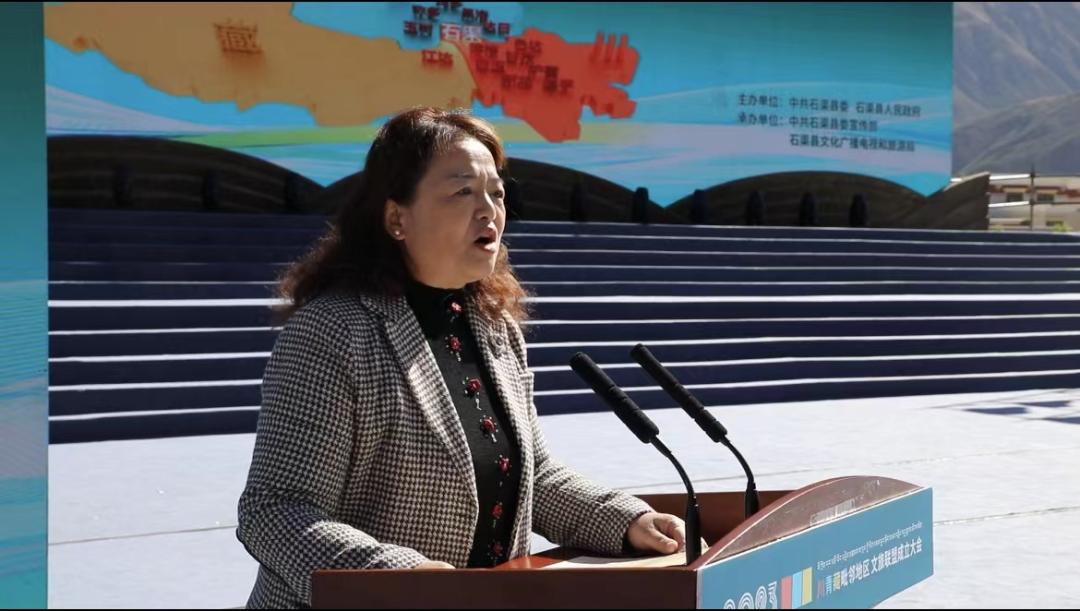 成立大会上,著名摄影家吕玲珑为石渠县作文旅资源推介,玉树州称多县、果洛州玛多县、昌都市文旅代表也作了旅游推介。