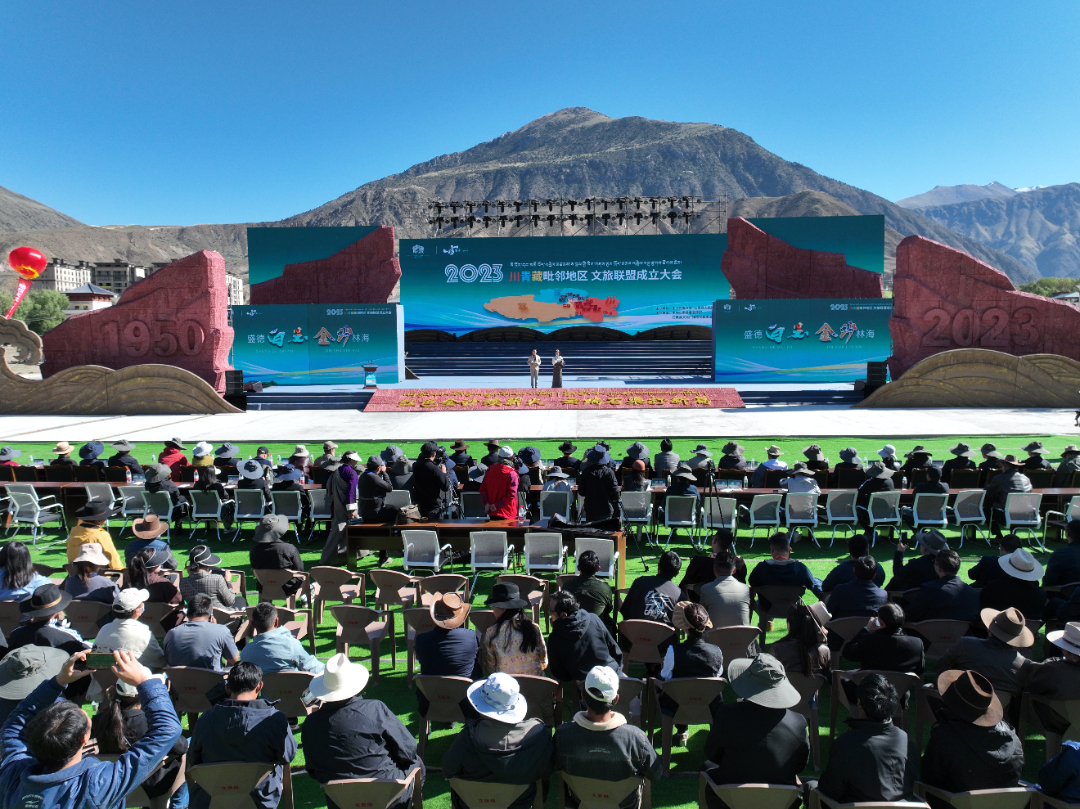 西藏自治区昌都市,青海省玉树州、果洛州、玉树州玉树市、称多县、玛多县、达日县、江达县,甘孜州德格县、甘孜县、白玉县、新龙县、炉霍县、色达县、道孚县、石渠县的16家文旅部门在大会上共同签订了川青藏毗邻地区文旅联盟协议。