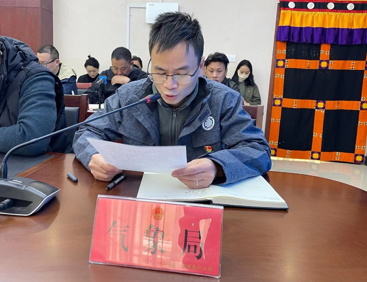 会上,县气象局负责人通报了气象预测并作分析研判。