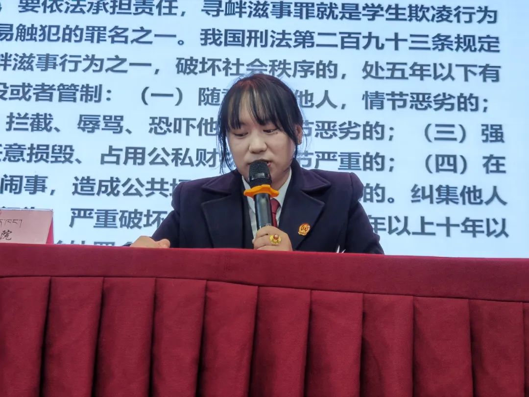 随后,石渠县正义雪莲女子审判团队宣讲员围绕“以法治之力呵护未成年人健康成长”展开石渠县法院正义雪莲《开学第一课》。同时,宣讲员还结合未成年保护法、校园暴力等方面的内容与在场学生们进行了互动问答。