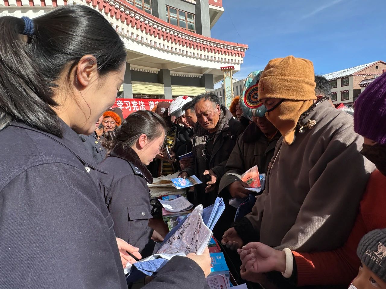今天是12月4日国家宪法日,我们通过发放宣传手册,现场解答法律咨询等形式,进一步增强了广大群众的法律意识和法制观念, 县委网信办工作人员扎西青措说道。