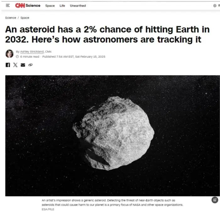 最近,一颗编号为“2024 YR4”的小行星“可能会在8年后撞击地球”在网络上引起热议。