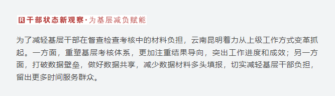 明确“未经备案表格可拒填,重复索要数据可举报”。通过街道履职事项“三张清单”厘清权责边界,既防止部门“甩锅”推责,又杜绝“体外循环”报表。