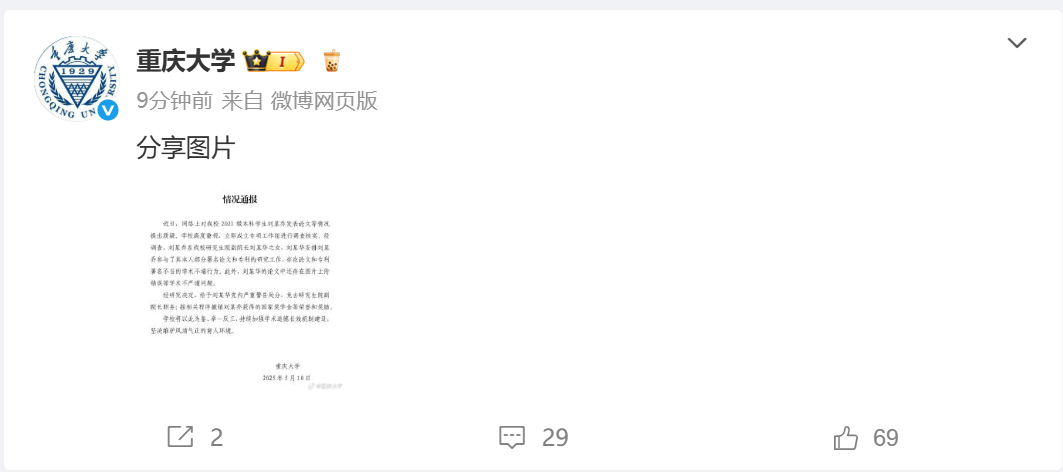 重庆大学微博截图