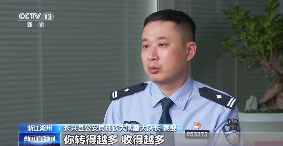 长兴县公安局刑侦大队副大队长 戴斐:要看区域头目跟下面“红包手”具体是怎么商量的,有些是按照天来计算,就是你工作一天给你个几百块钱,两三百块钱、三四百块钱都有。有些是按照量,就是说按照流水的量,你转得越多、收得越多,工资也就越高,基本上也在1%、2%的样子。