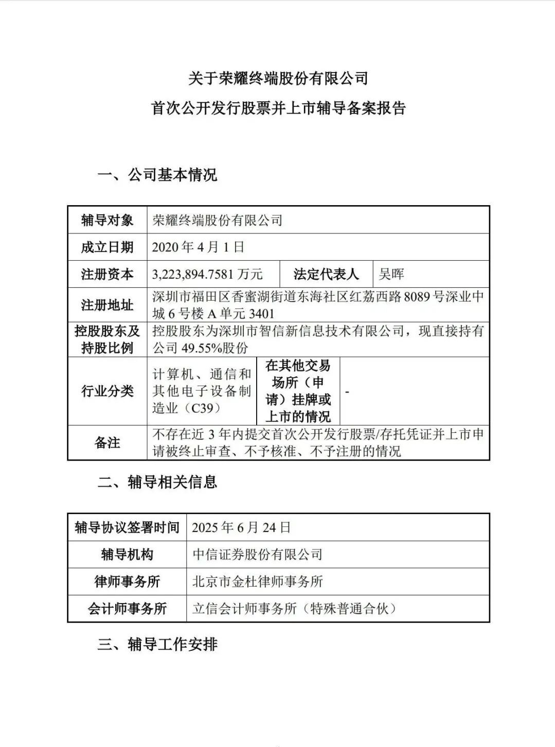荣耀确认启动IPO辅导,最晚明年3月前完成上市辅导