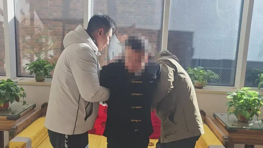 ▲2025年2月17日,民警在北京通州宋庄艺术区将潜逃31年的李小力抓获。受访者供图