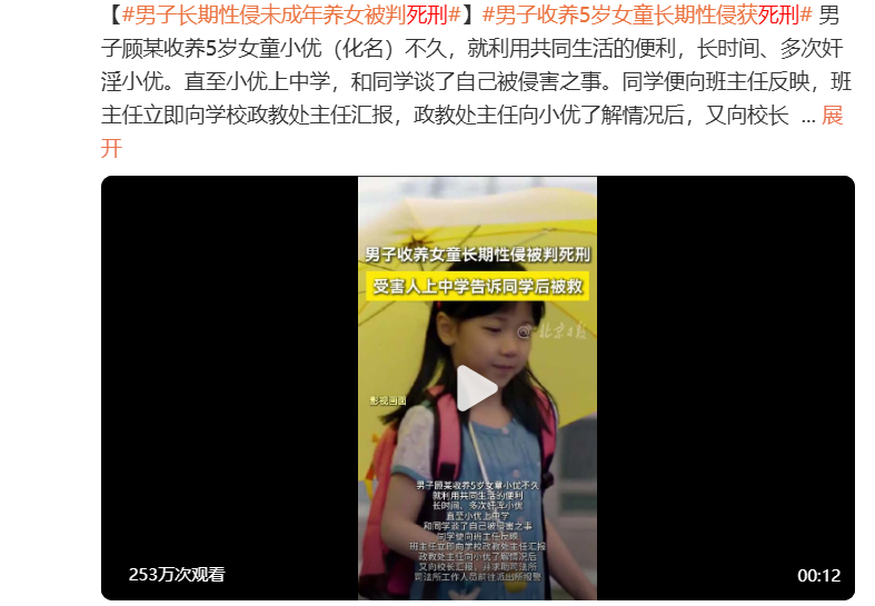经警方查明,除了小优,顾某还对其他4名未成年女孩实施了性侵害。最终,顾某因犯强奸罪、猥亵儿童罪,被法院判处死刑。
