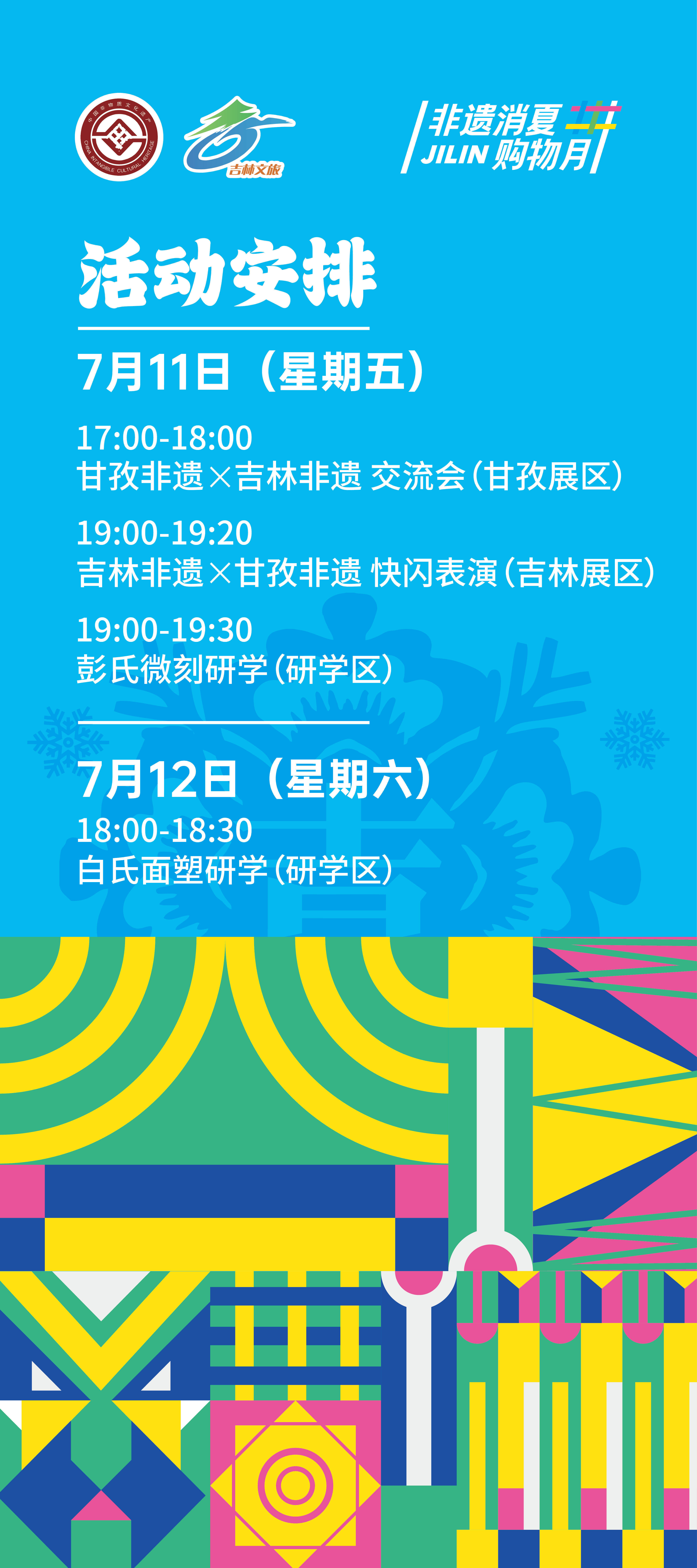 7月11日在甘孜展区将举行甘孜非遗&吉林非遗交流会,共同探索跨地域技艺融合路径,为非遗的未来注入兼具文化温度与市场活力的持久动能;此外,在吉林展区将上演快闪表演,朝鲜族歌舞等节目,届时将与藏族经典歌曲同台献艺,展现"非遗一家亲"的动人场景。