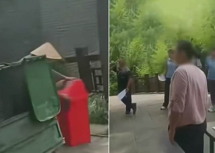 此前,有网友发视频称河北石家庄德明古镇一环卫工拉着一车垃圾桶正在擦拭,周围多名工作人员拿着表格看着。