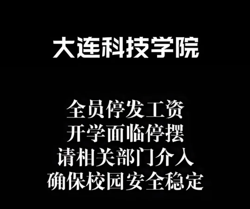 近日,有网友发帖称“大连科技学院全员停发工资,开学面临停摆”,引发关注。在帖文评论区,记者注意到有一封落款为“大连科技学院工会委员会”的《致全体教职员工一封信》。信中提到,在未收到任何法律文书和通知的情况下,学校各类相关账户被大连市中级人民法院冻结,致使7月工资未能如期发放。学校工会将为全体教职员工发放临时困难补贴和慰问补贴。