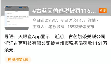 3月28日,古茗奶茶因偷逃税被罚超1161万元,登上热搜榜榜首。