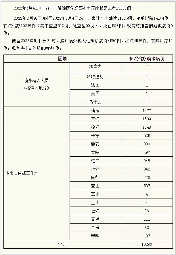 2022年5月4日0—24时,上海新增本土“261+4390”