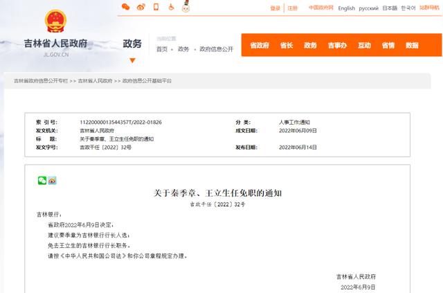 吉林省政府最新任免一批干部