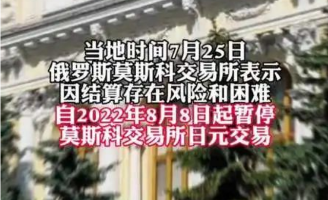 俄罗斯莫斯科交易所25日发布公告称,自8月8日起暂停日元交易,限制措施适用于日元-卢布和美元-日元的相关外汇交易。