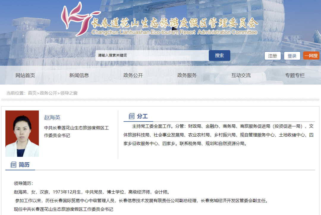 赵海英已出任中共长春莲花山生态旅游度假区工作委员会书记,主持党工委全面工作。