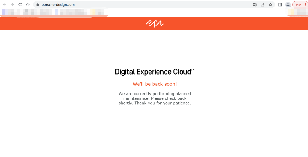 12日午间,中新经纬再次刷新保时捷设计的官网,发现其跳转为“正在维护中”的页面,一度无法正常打开。