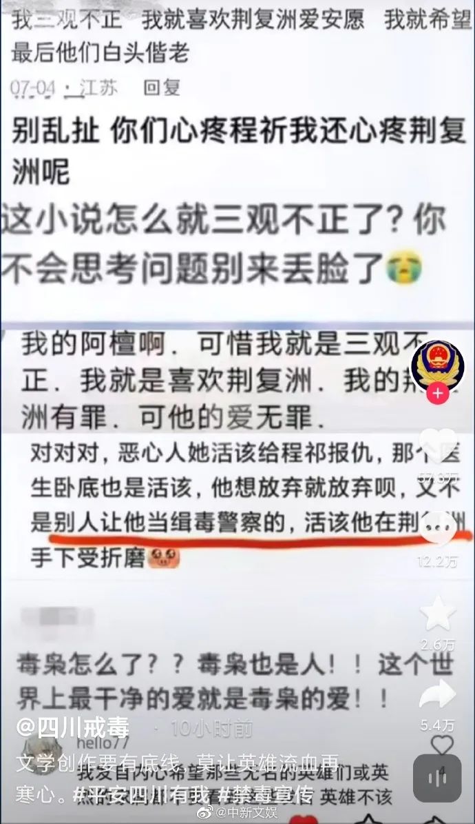 @四川戒毒 并发出呼吁:请不要因小说情节偏离核心价值观,伤害禁毒英雄情感。善语结善缘。