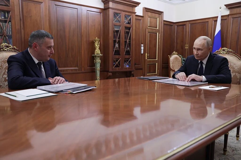 当地时间2025年12月2日,俄罗斯莫斯科,普京(右)在克里姆林宫会见亚历山大·欣施泰因