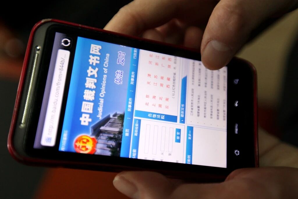 ▲一名市民在手机上浏览“中国裁判文书网”。图/IC photo
