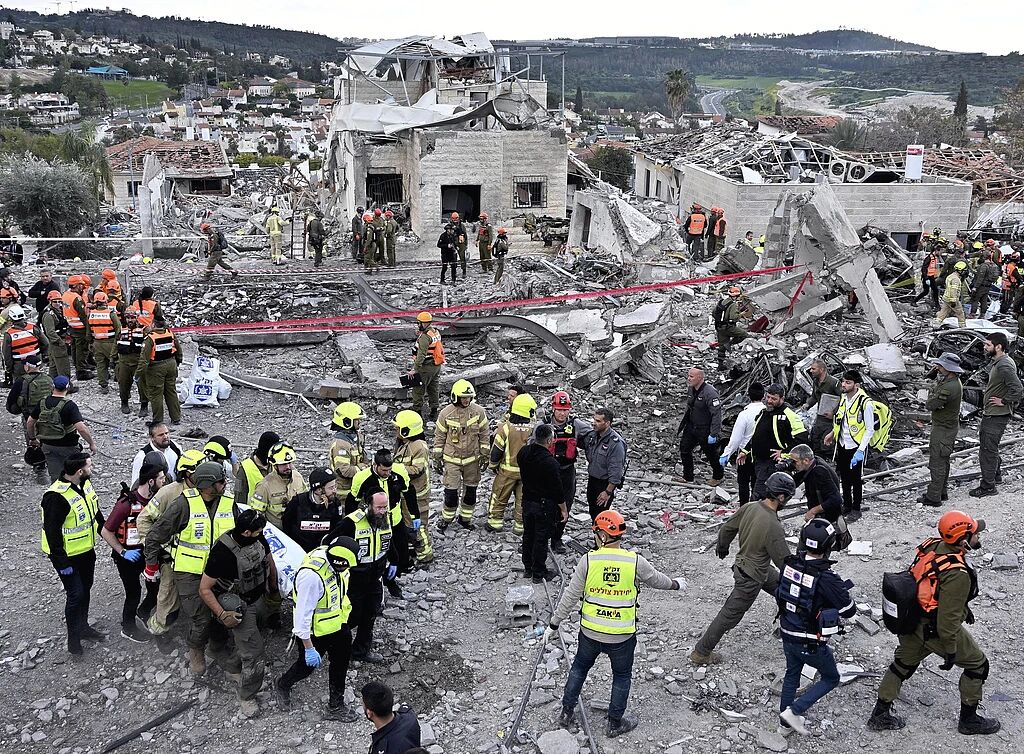 当地时间2026年3月1日,以色列贝特谢梅什,照片显示被伊朗导弹袭击摧毁的建筑。